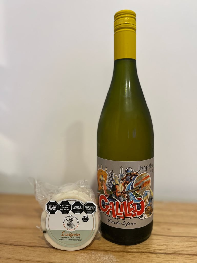 Por otro lado, el queso que les trajimos para acompañar este naranjito es un Lusignan de cabra, el cual es suave y untuoso, con una señal aromática leve. A su vez, al estar saborizado con pimienta verde, tiene un picor que lo hace más perdurable en el paladar, produciendo una sensación delicada y agradable. El queso de cabra suele ir excelente con vinos claros, bien frescos. La untuosidad y el picor hacen que este queso vaya excelente con el naranjo de Galileo, con las notas dulces y frescas que generan que la boca explote de sabor. Amamos este maridaje!